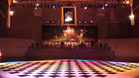 Next, theatrical lighting is installed. There is a large truss structure that is built and flown from the ceiling to light the main event side of the room. For the bar, light trees are constructed to provide a wash of light. While the décor for the event really does bring another element of “WOW” to the night, the lighting is really what does it.